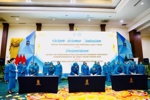 Cantika Wahono dilantik bersama dengan 35 Ketua TP PKK Kabupaten/kota se- Jawa Timur di Gedung Negara Grahadi pada Minggu (2/03/2025), dipimpin oleh Arumi Bachsin Emil Dardak selaku Ketua TP PKK Provinsi Jawa Timur.