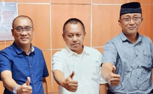 Ketua PWI Jatim Lutfil Hakim (tengah) bersama Sekretaris PWI Jatim, Eko Pamuji dan Ketua Panitia HPN 2024, Sokip.@KBID-2024.