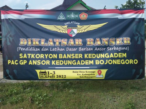 GP AnsorKAMPUNGBERITA.ID – Pimpinan Anak Cabang Gerakan Pemuda (PAC GP) Ansor Kecamatan Kedungadem Kabupaten Bojonegoro menyelenggarakan Pendidikan dan Latihan Dasar Barisan Ansor Serbaguna (Diklatsar Banser) pada tanggal 01 – 03 Juli 2022, di Pendopo Balai Desa Kesongo Kedungadem.