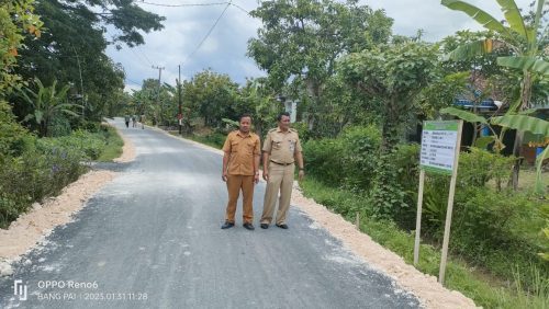 Harno warga Desa setempat pun mengungkapkan rasa senangnya setelah pengaspalan jalan selesai, ia pun cerita seumur umur baru kali ini ada pengaspalan jalan di Desa nya.