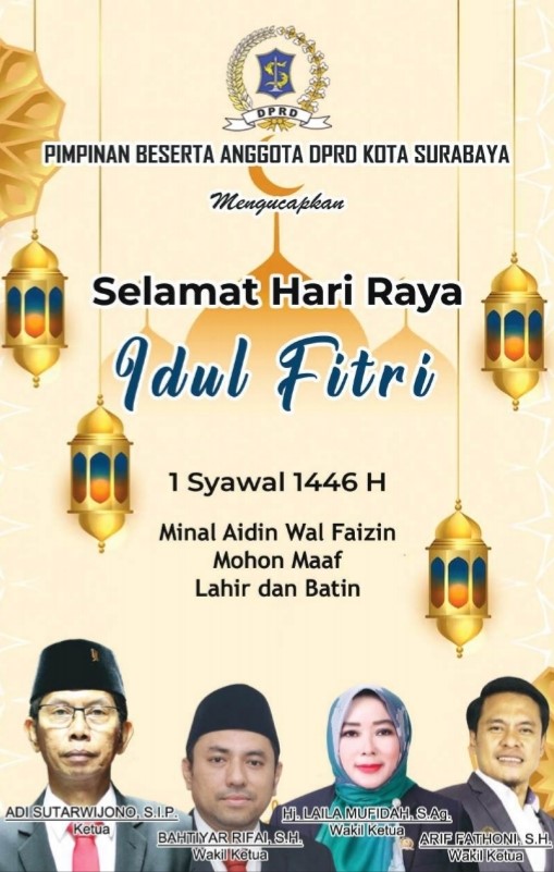Surabaya TeranyarPimpinan Beserta Anggota DPRD Kota Surabaya Mengucapkan Selamat Hari Raya Idul Fitri 1446 Hijriah oleh RedaksiKBID30/03/202521/04/2025 Bagikan