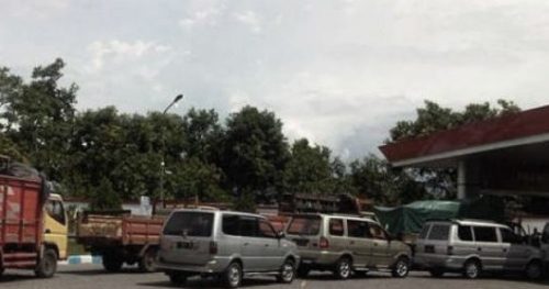 Antrean kendaraan yang akan mengisi BBM di salah satu SPBU.@KBID2019