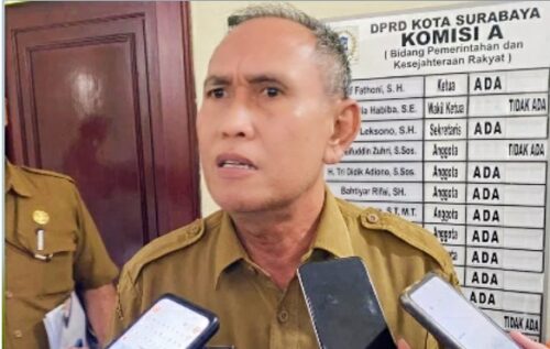 Kepala Dinas Pendidikan Kota Surabaya, Yusuf Masruh usai rapat koordinasi dengan Komisi D DPRD Kota Surabaya membahas RAPBD 2026, Senin (20/10/2025).