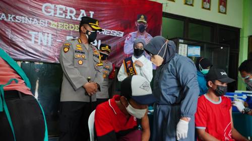 Kapolresta Sidoarjo Kombes Pol. Kusumo Wahyu Bintoro menyampaikan pelaksanaan vaksinasi Covid-19 tahap dua berjalan lancar. Masyarakat juga begitu antusias mendatangi Gerai Vaksin Presisi Polresta Sidoarjo.
