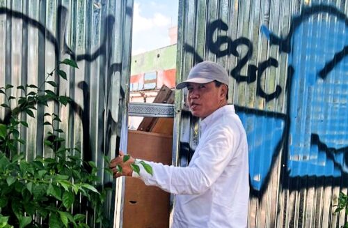 Anggota Komisi D DPRD Kota Surabaya, Imam Syafi’i mengecek bangunan yang diduga cagar budaya rata dengan tanah dan ditutup pagar seng.@KBID-2025.