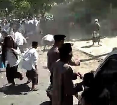 Sekitar pukul 13.00 WIB rupanya dialog berlangsung sengit dan tidak ada kata sepakat. Karena hilang kesabaran, massa kemudian merengsek maju akhirnya pendukung Mantap terlibat bentrok dengan aparat kepolisian, dengan aksi saling dorong, bahkan sempat terjadi aksi pelemparan batu oleh massa yang tampak semakin emosi.