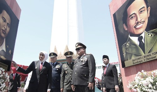 “Tidak harus terjun ke medan perang dengan angkat senjata. Siapa saja bisa jadi pahlawan dengan catatan nilai-nilai kepahlawanan tersebut terimplementasi secara nyata dan terwujud dalam tindakan sehari-hari,” ungkap Khofifah usai upacara Peringatan Hari Pahlawan di lapangan Tugu Pahlawan Surabaya, Minggu (10/11/2019).