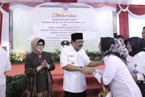 Setelah sebelumnya dilakukan di lingkungan Kantor Gubernur Jatim, silaturahmi Gubernur dan Wakil Gubernur Jatim beserta istri dan pejabat ini dilakukan di Kantor Dinas Pekerjaan Umum (PU) Bina Marga Provinsi Jatim, Jalan Gayung Kebonsari Surabaya, Rabu (16/1).