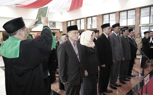 KAMPUNGBERITA.ID – Menjelang pemilihan umum (Pemilu) 2019, Walikota Surabaya, Tri Rismaharini kembali melantik pejabat di lingkungan Pemkot Surabaya. Bertempat di lobby lantai II balai kota, Senin sore, (27/8) sebanyak 34 Pegawai Negeri Sipil (PNS) diambil sumpah untuk dilantik.