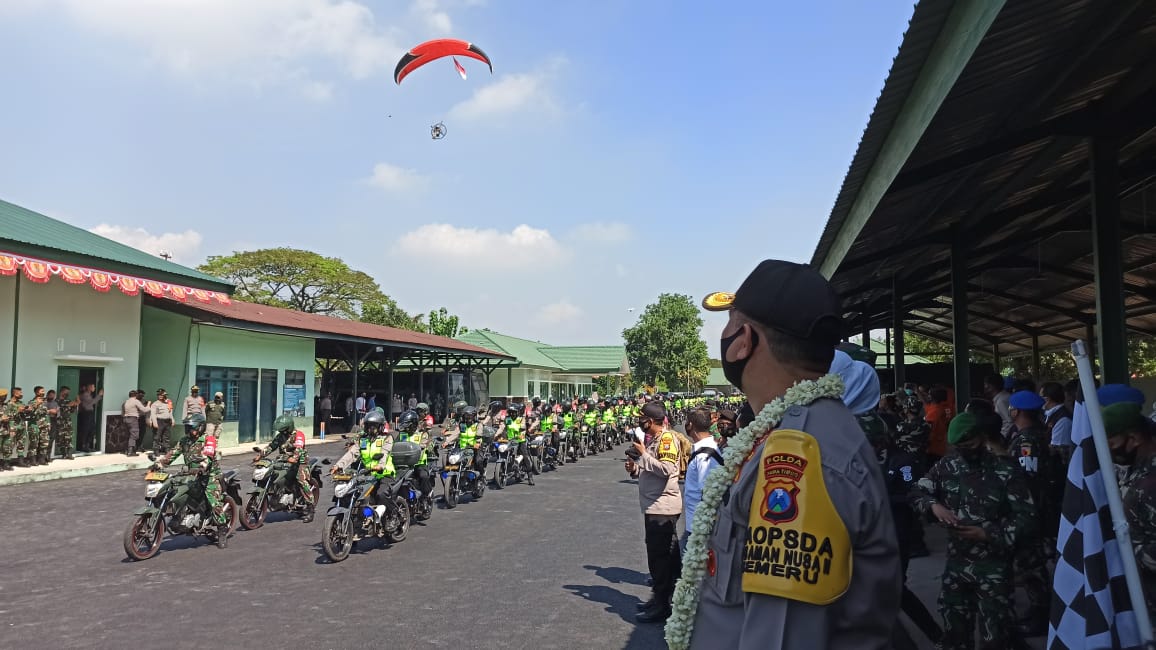Pada kesempatan tersebut Khofifah bersama Pangdam V Brawijaya dan Kapolda Jatim juga memberangkatkan para anggota Babinsa dan Bhabinkamtibmas. Para petugas TNI dan Polri tersebut yang diturunkan ke masyarakat untuk melakukan sosialisasi, edukasi dan pengawasan di lapangan. KBID-RIZ