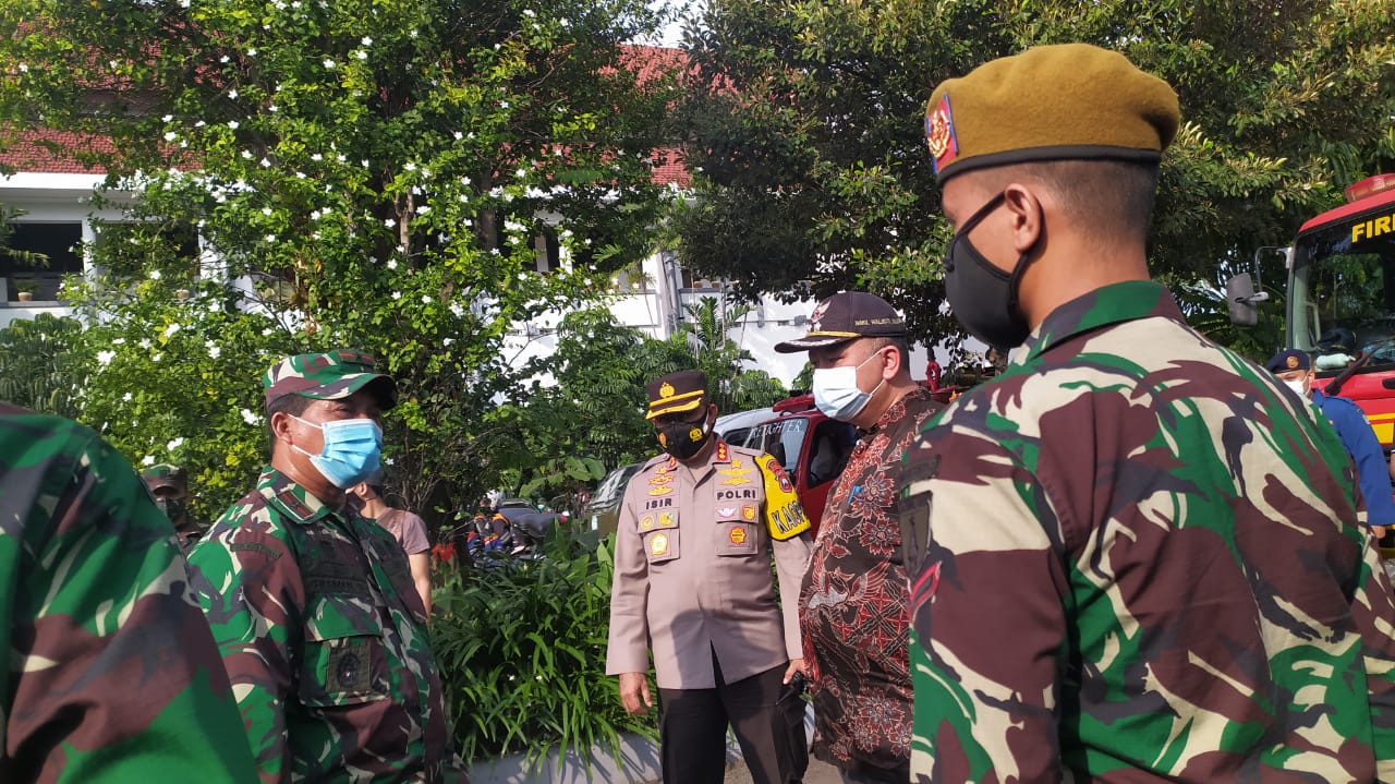 KAMPUNGBERITA.ID – Pemerintah Kota (Pemkot) Surabaya bersama jajaran TNI-Polri menggelar apel persiapan pengamanan malam pergantian tahun baru di halaman Balai Kota Surabaya, Kamis (31/12/2020).