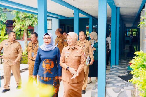 Wakil Bupati Bojonegoro Nurul Azizah yang didampingi Ketua TP PKK Cantika Wahono, serta Pj. Sekretaris Daerah dengan teliti memasuki lorong-lorong sekolah mengecek kondisi dan persiapan.