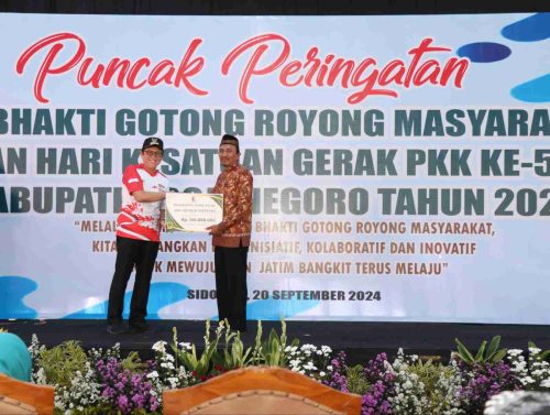 KAPUNGBERITA.ID – Pemkab Bojonegoro melalui Dinas Pemberdayaan Masyarakat Kabupaten Bojonegoro, menggelar Puncak Peringatan Bulan Bhakti Gotong Royong Masyarakat (BBGRM) XXI dan Hari Kesatuan Gerak PKK Ke-52 tahun 2024, di Lapangan Desa Sidorejo, Kec. Sukosewu, Jum’at pagi (20/09).