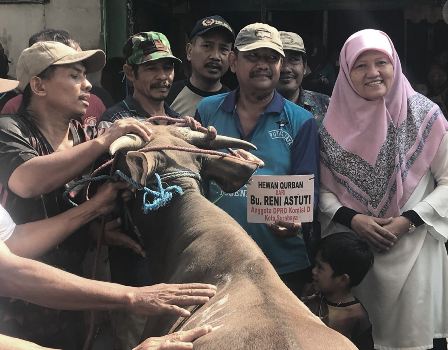 KAMPUNGBERITA.ID – Anggota Komisi D DPRD Surabaya, Reni Astuti, S.Si, adalah salah satunya. Usai sholat Idul Adha 1439 H, Rabu (22/8/18), Bunda Reni, sapaannya, mendampingi pemotongan sapi dan beberapa ekor kambing, di kawasan eks lokalisasi Dolly. Tepatnya di wilayah RW III, Putat Jaya, Kelurahan Putat, Kecamatan Sawahan.