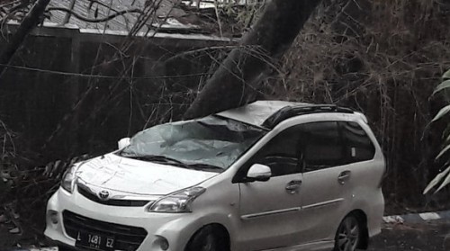 Data BPB dan Linmas Kota Surabaya, ada sekira 44 wilayah yang terdampak. Tak sedikit pohon tumbang menimpa pengendara mobil.
