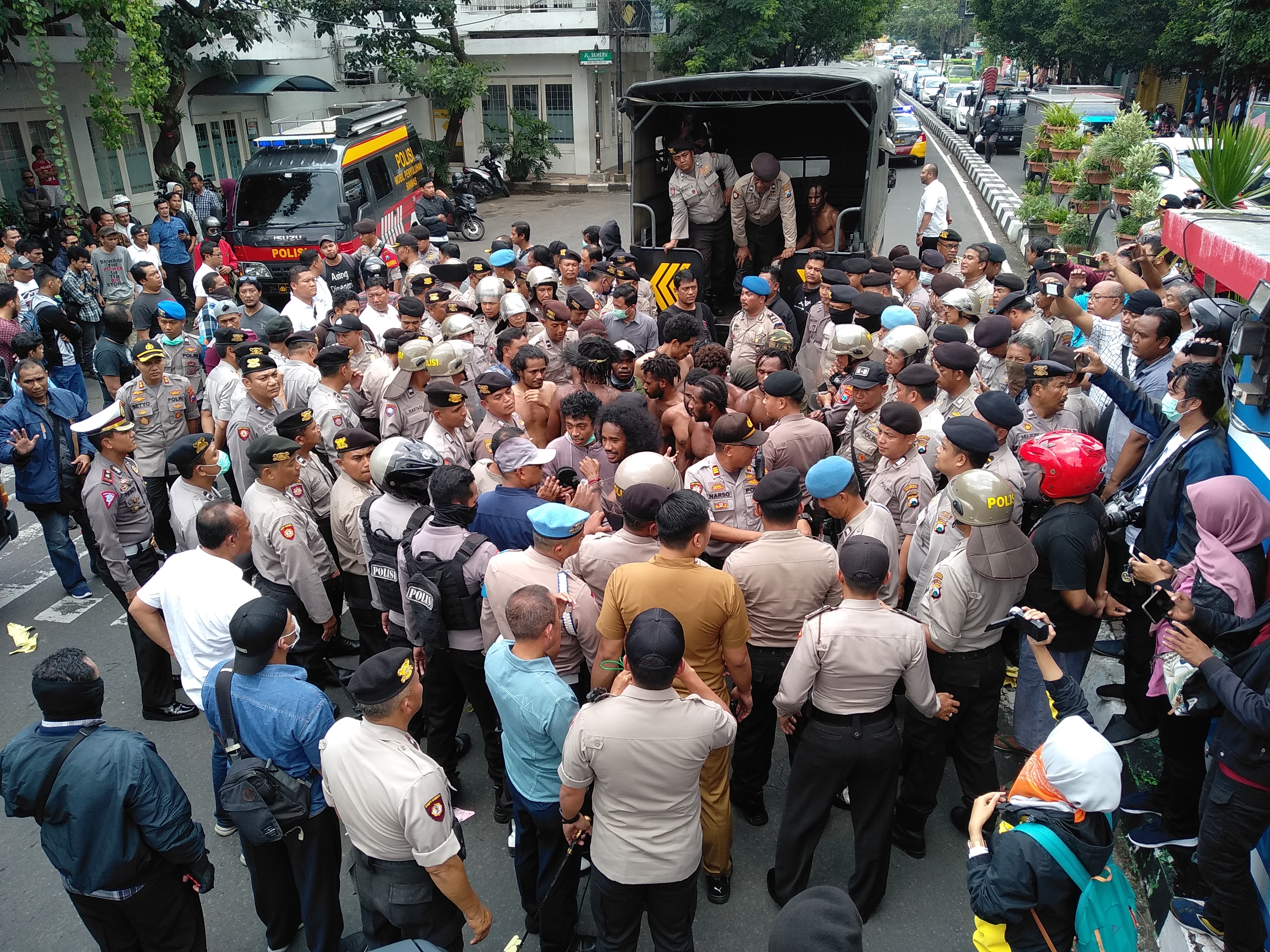 Aksi demo tak berijin memakan waktu hingga satu jam di lapangan. Aksi menyerukan kemerdekaan Papua Barat, terus digaungkan secara berulang kali kepada ratusan aparat Kepolisian yang mengawal.