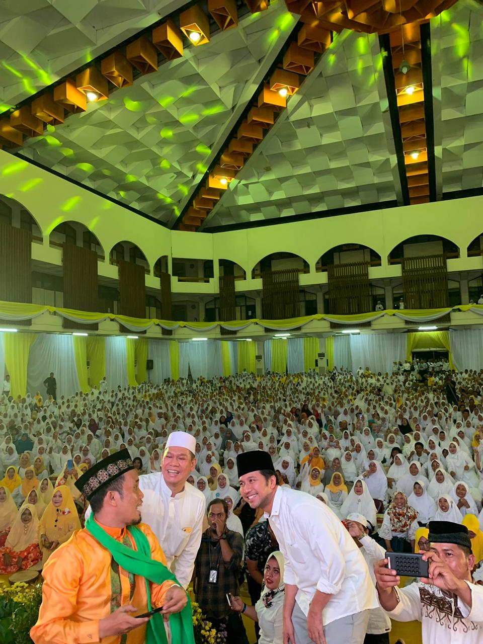 Adies Kadir bersama Wagub Jatim, Emil Dardak dan Ustad Maulana saat doa bersama di Islamic Center Surabaya